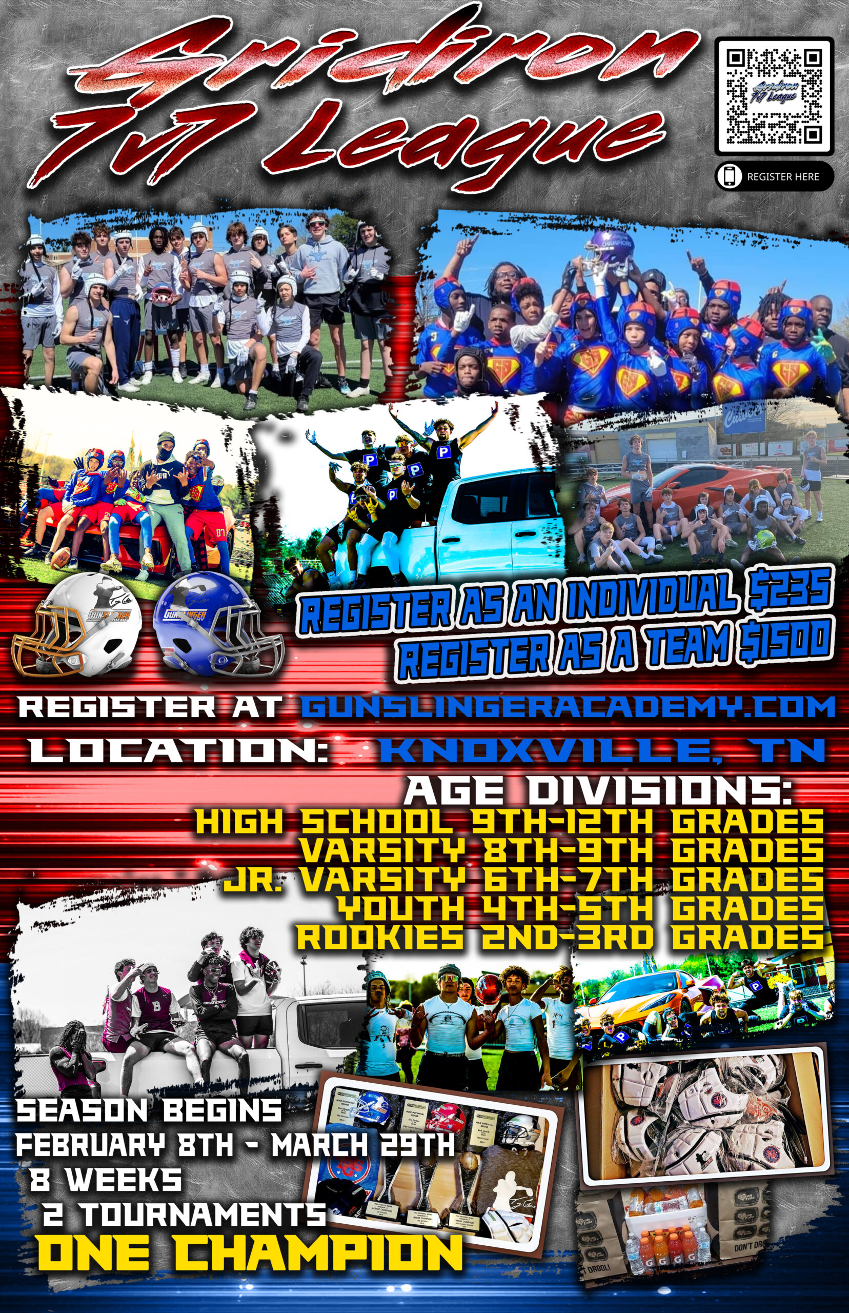 The Gridiron 7v7 League has combined development, competition, exposure, and a ton fun into an 8 week 7v7 experience unlike any other! Two tournaments AND six weeks of league play compiled with stats, standings, and player of the week and year awards make the Gridiron League one of the best 7v7 experiences in the country! With expectations of 40+ teams ranging from 4th grade through High School, we can’t wait until February 2025!